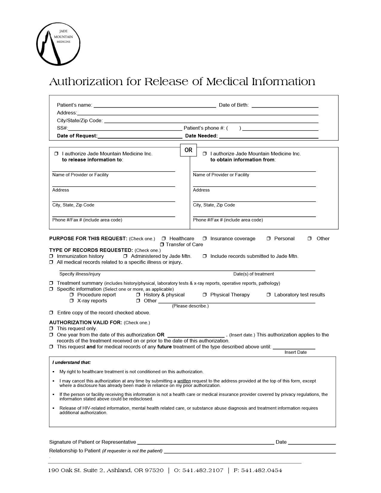 If you are a new patient at Jade Mountain Medicine, please download, print, complete, and bring with you to your first visit: